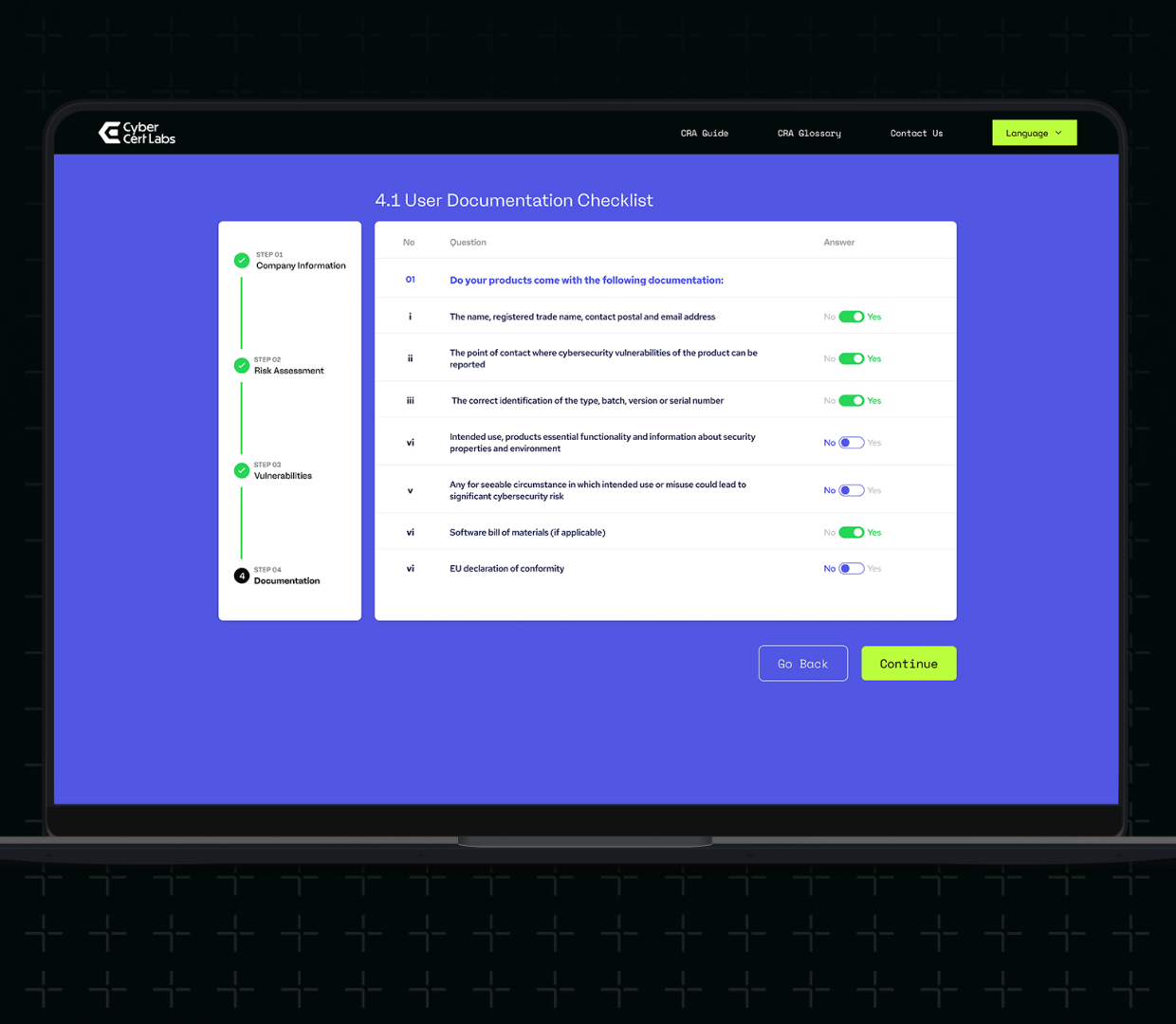 I recently completed the CRA assessment, and overall, I found it to be a highly valuable and insightful tool. It significantly broadened my understanding of the CRA requirements and helped me evaluate my product’s readiness in a structured way.